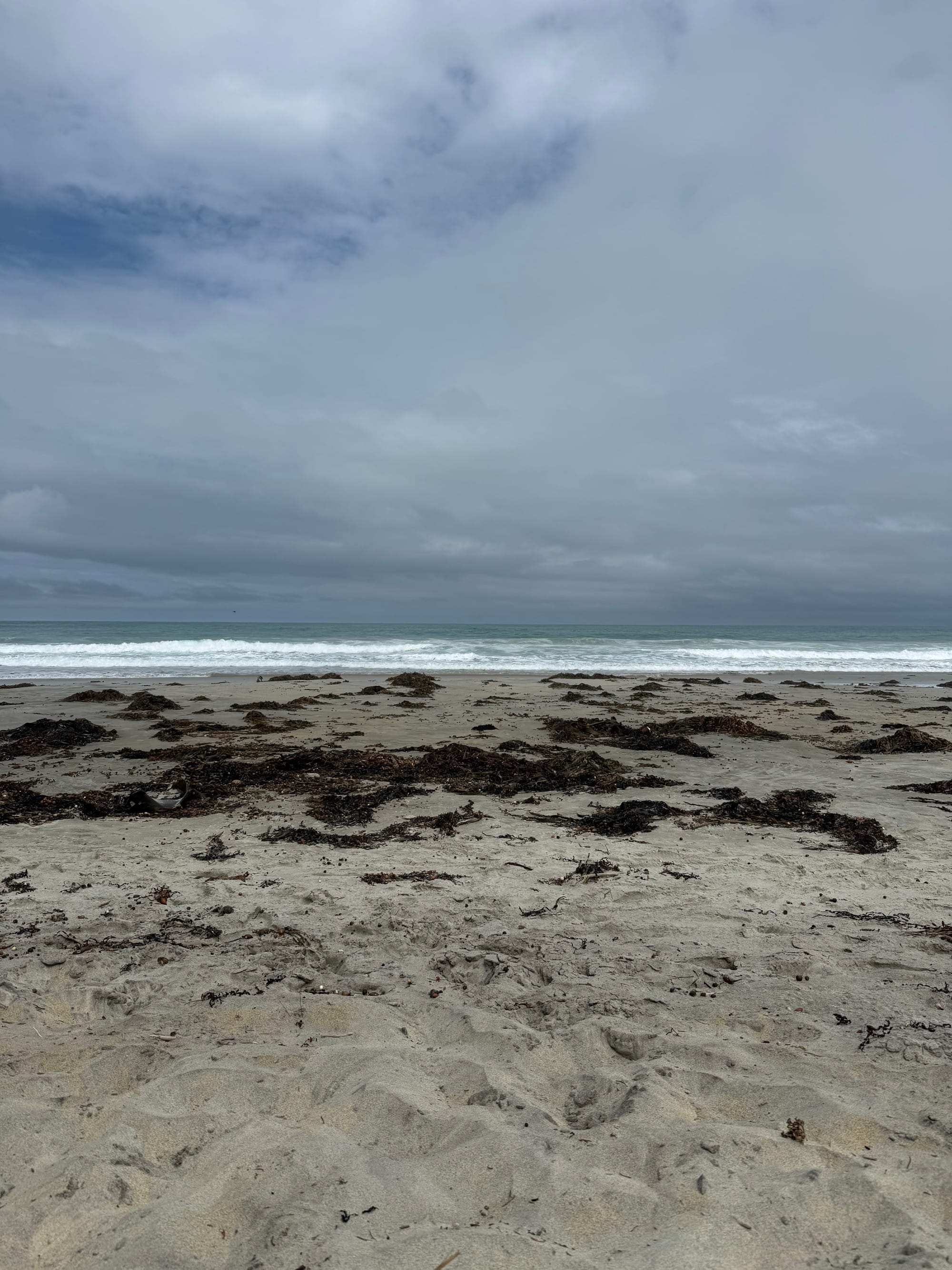 One day after Christmas, I was hanging out at the beach. The weather was awful, and we had timed it very poorly, arriving just as the tide was heading out, with a really strong pull. Standing in the shallows, long trenches appeared in front of my feet as the sand was sucked away by the outgoing waves.