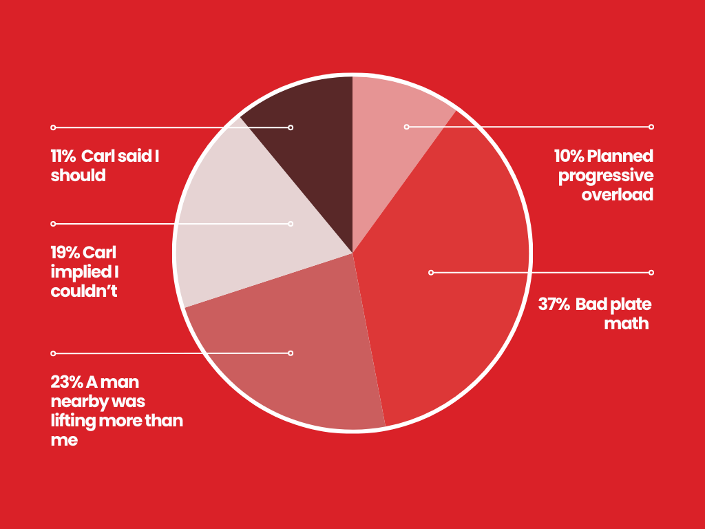 “Sometimes I think maybe I can lift more, but then my back twinges and I don’t want to.”“Well, you should absolutely listen to your back. But I would say two things. Firstly, women are almost always capable of lifting more than they think, in my opinion. And secondly: progressive overload, baby.”